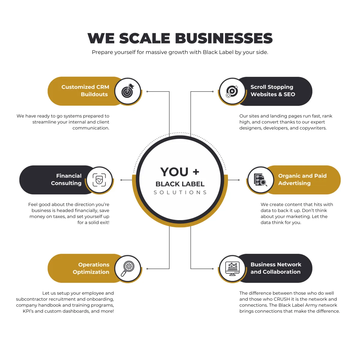 “Whether it's marketing, content creation and strategies, SOPs, CRM, financial and tax planning, or website development, Black Label Solutions truly is a one-stop shop. Their hands-on approach and wide range of services make them an invaluable asset to any business looking to grow and succeed.”